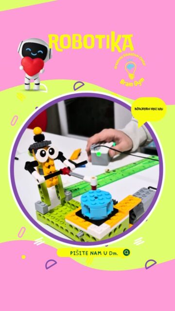 Lego Robotika sa modelima od kockica i početno programiranje . Na nastavi ” oživljavamo ” modele izrađene od kockica dodajući im motore i senzore. Tokom naših časova, deca su suočena sa novim izazovima i naučnim konceptima, koja ih podstiču da samostalno razmišljaju , upotrebljavaju logiku , kreativno i kritičko mišljenje, ali i da razvijaju svoje socijalne sposobnosti kroz timski rad i komunikaciju sa drugarima!