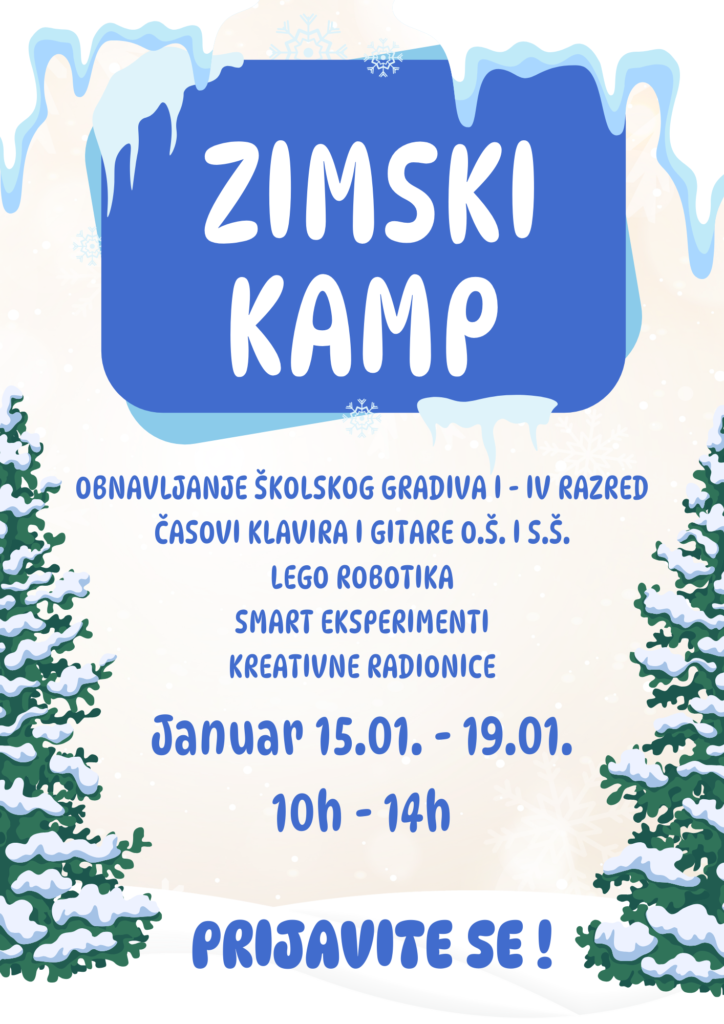 Tokom zimskog ili letnjeg raspusta organizujemo kampove . Traju jednu radnu nedelju , uz dosta različitih aktivnosti . Uključeni su različiti projekti , eksperimenti , Lego robotika i kreativne radionice .